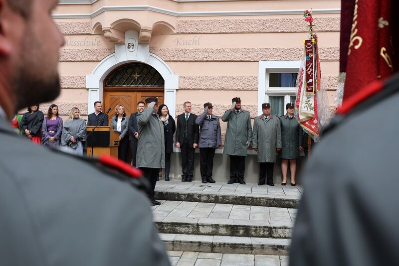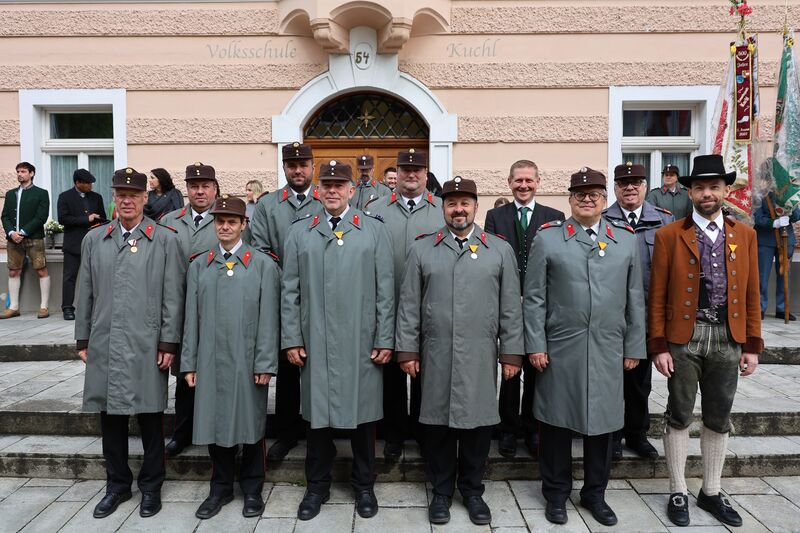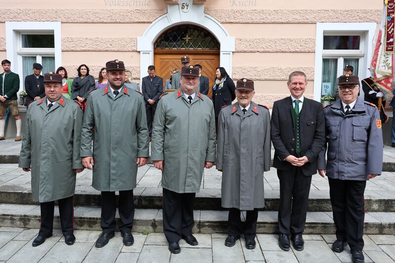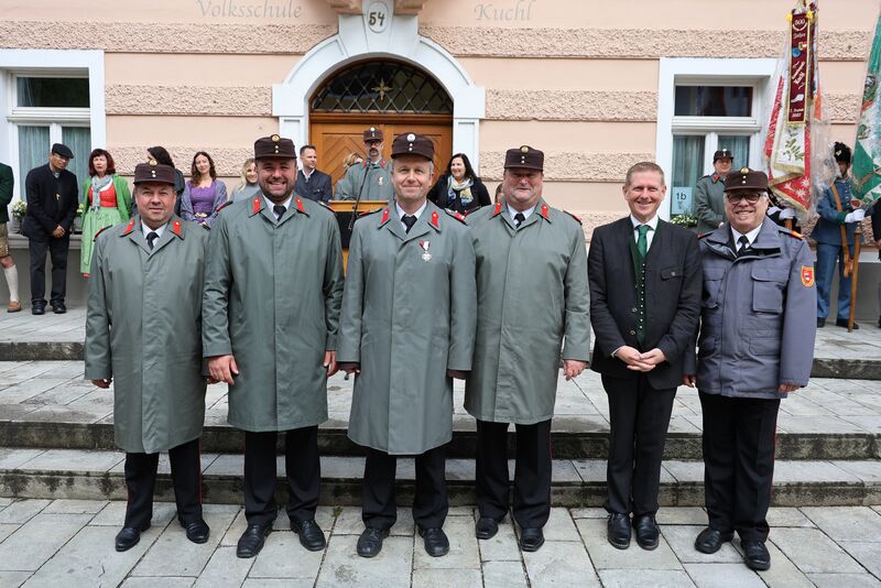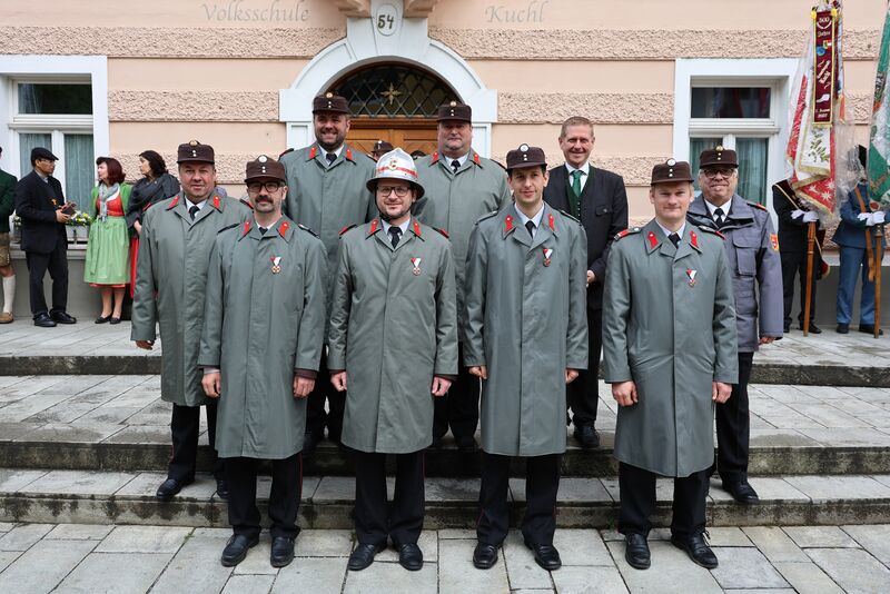 Ortsfeuerwehrkommandant ABI Gerhard Scherfl begrüßte zahlreiche Besucher, wie die Fahnenabordnungen der Kuchler Vereine, Bgm. Dr. Thomas Freylinger, Vizebürgermeisterin Dr. Carmen Kiefer, Vizebürgermeister Mag. Gerhard Brandauer, zahlreiche Mitglieder der Gemeindevertretung, Abschnittsfeuerwehrkommandant BR Rupert Unterwurzacher sowie die Mitglieder der Feuerwehr Kuchl.