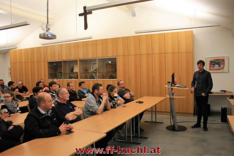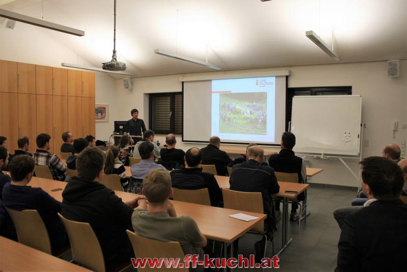 Katastrophenreferent Philipp Kogler von der Bezirkshauptmannschaft Hallein war als Vortragender zu Gast bei der Winterschulung der Freiwilligen Feuerwehr Kuchl. Im vollen Lehrsaal ging es um gesetzliche Grundlagen und Voraussetzungen, Zusammenhänge, Verantwortlichkeiten und Beschreibung der Arbeit des Katastrophenreferenten. An Hand zahlreicher Bilder zeigte Philipp Kogler Beispiele aus seinem bisherigen Tätigkeiten.