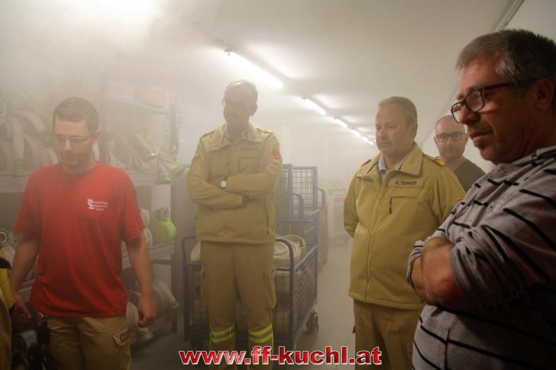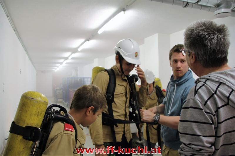 Vor dem Frühstück gab es noch einen Brand, der ebenfalls in kürzester Zeit - dank der schnell gelegten Zubringerleitung - gelöscht wurde. Durch den starken Regen am Vormittag fiel das Abseilen vom Georgenberg leider buchstäblich ins Wasser. Dafür gab es eine wirklich geile Atemschutzübung im Keller des Feuerwehrhauses unter sehr realistischen Bedingungen. Natürlich wurde dabei - so wie bei jeder Übung - auf die Sicherheit und das Wohl der Jugendlichen größtes Augenmerk gelegt. Davon konnten sich auch Bezirksfeuerwehrkommandant OBR Günter Trinker und sein Stellvertreter BR Markus Kronreif bei ihrem Besuch überzeugen.