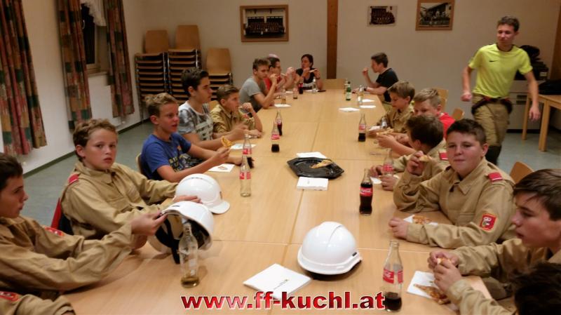Der nächste Programmpunkt war ein Besuch beim Löschzug Jadorf, wo durch Löschzugskommandant BI Mayr Christian und seinem Stellvertreter OBm Gerhard Pichler der Löschzug und seine Fahrzeuge vorgestellt wurde. Danach wurde es "heiß": Brand einer Gartenhütte im Ortsteil Georgenberg. Durch den organisierten Einsatz unserer Jugendlichen hatte das Feuer aber keine Chance und so konnte man sich anschließend im Feuerwehrhaus Jadorf bei einer oder besser gesagt: mehreren Pizzen wieder stärken - herzlichen Dank an die Jadorfer Mannschaft.