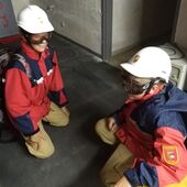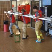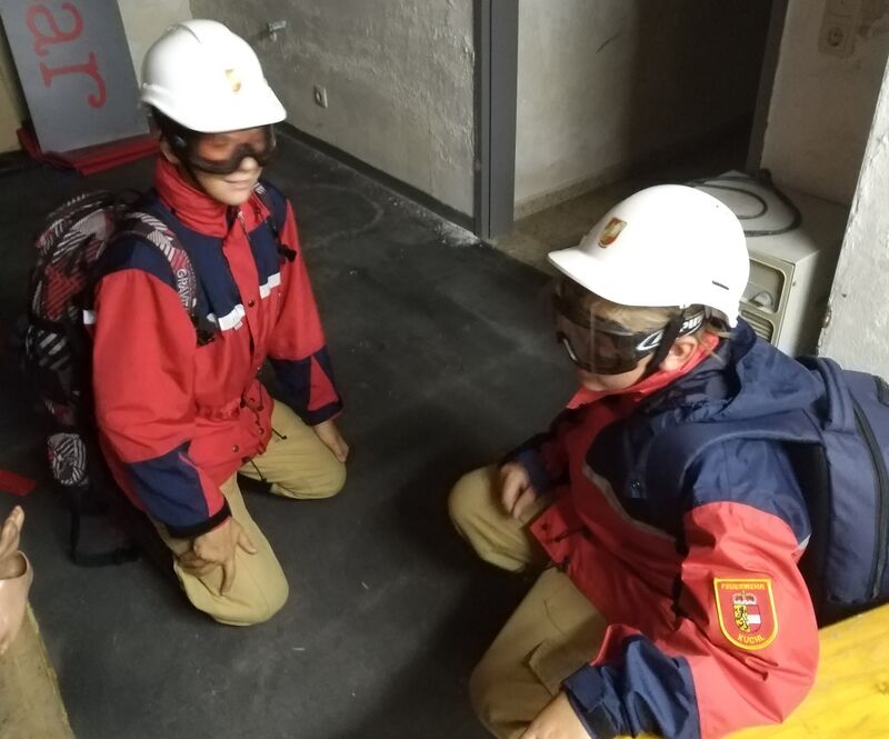 Nach dem kräftigenden Frühstück wurde noch ein kurzer Powernap eingelegt und anschließend die Betten wieder abgebaut. Währenddessen kam die nächste Alarmierung „Vermisste Person im verrauchten Keller des Feuerwehrhauses“. Die Jugend rüstete sich mit „speziellem“ Atemschutz aus und durquerten den Parkour in 2er Teams um die vermisste Person aus ihrer Notlage zu retten.