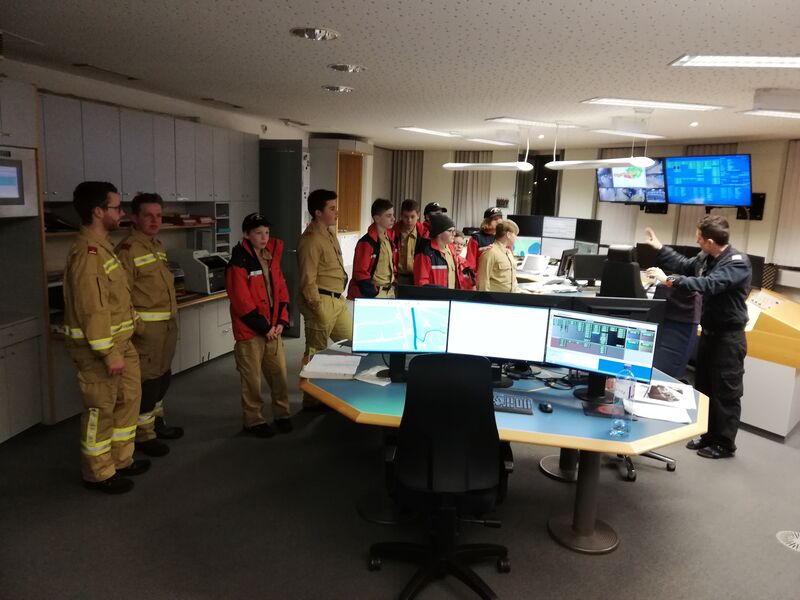 Der nächste Teil der Führung brachte uns in die Leitstelle, in welcher wir das Alarmsystem gezeigt bekamen und einen Probealarm in der Leitstelle auslösen durften. Danach gab es noch eine Führung durch das restliche Feuerwehrhaus bis wir beim interessantesten Teil für unsere Jugendlichen angekommen sind, den Fahrzeugen.