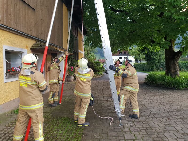 - Anleiterbereitschaft, OFK Stv. HBI Johann Struber hat mit der Mannschaft die 14 Meter Leiter beübt.