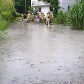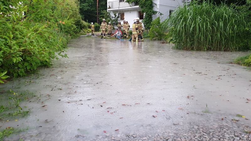Durch den heftigen Regen, kam es zu Überschwemmungen von Wohnflächen im Bereich Garnei. Durch den Einsatz von mehreren Pumpen und Nasssaugern konnte das Wasser entfernt werden.