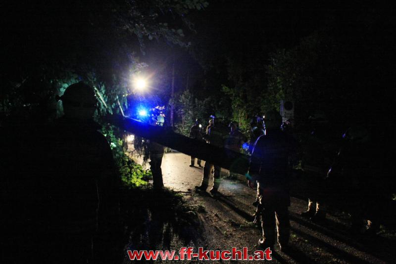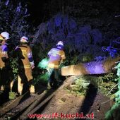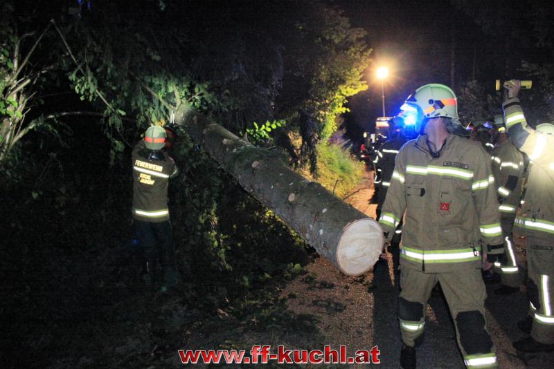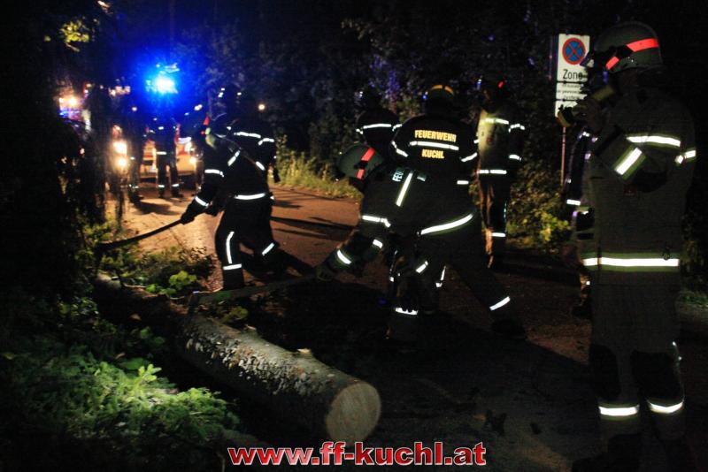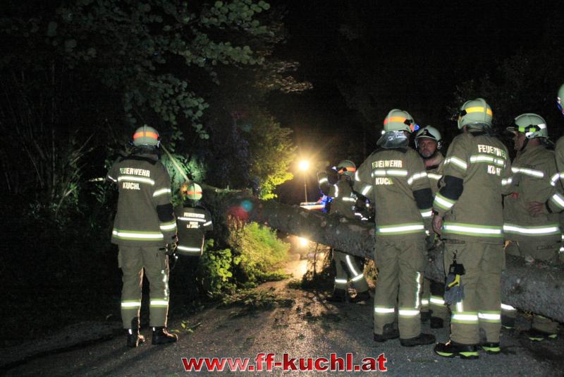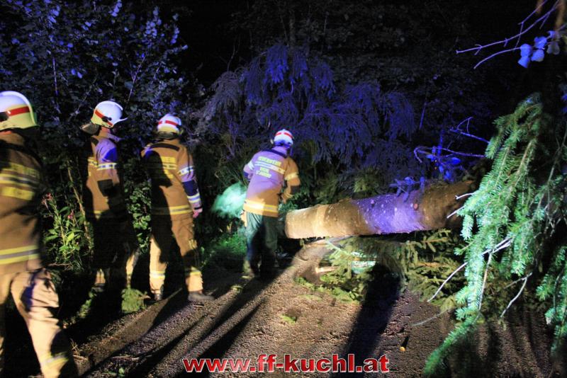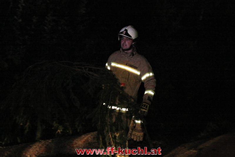 Die Sturmausläufer, die in Oberösterreich und in Salzburg große Schäden angerichtet hatten, streiften auch Kuchl. Um 22:52 Uhr wurden die Einsatzkräfte per Rufempfänger zu einem Baumwurf, der die Gemeindestraße in Unterlangenberg, Nähe der Römerbrücke blockierte, alarmiert.