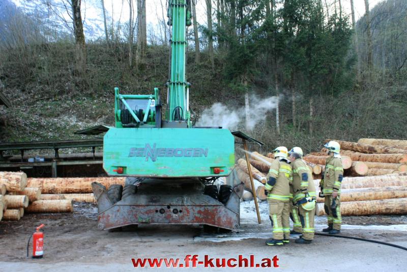 Gegen 19:20 Uhr kam es am Montag, den 09. April 2018 aus noch ungeklärter Ursache zu einem Baggerbrand im Kuchler Ortsteil Weißenbach. Wegen der starken Rauchentwicklung wurde über die LAWZ Salzburg die Freiw. Feuerwehr Kuchl per Sirene zum Brand alarmiert.