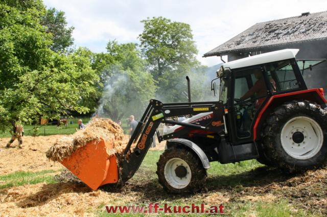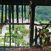 Der Altbauer ist mit den Strohschneidearbeiten im Heuboden des Stallgebäudes fertig und genehmigt sich die wohlverdiente Jause. 15 Minuten später bemerkt die Schwiegertochter starken Rauch aus dem Stallgebäude aufsteigen und laute Knaller durch berstende Eternitschindel, Flammen schlagen aus dem Heuboden. Auch mehrere Nachbarn hören den Lärm, der sich wie ein Feuerwerk anhört, sie verständigen über Notruf die Feuerwehr, eilen zur Hilfe und beginnen sofort mit dem Freilassen der Kühe...