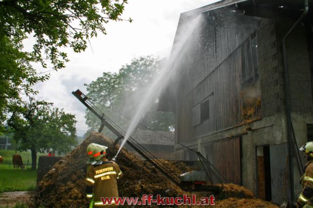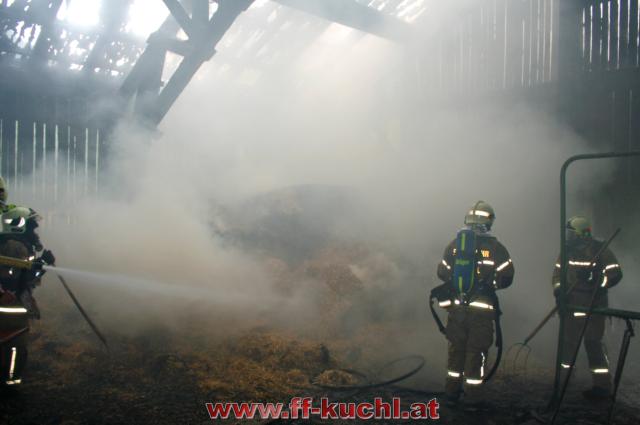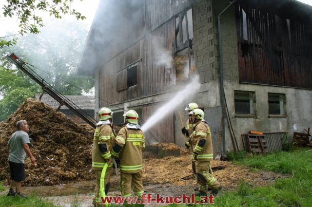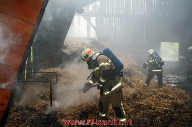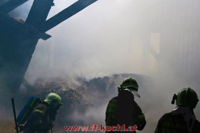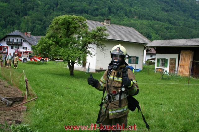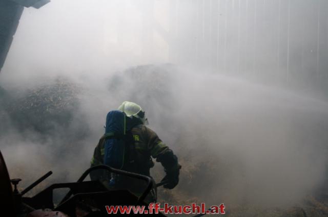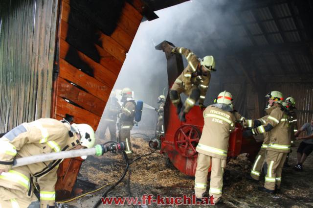 Um 10:03 Uhr löste der Disponent der Landes-, Alarm- und Warnzentrale Salzburg auf Grund der vielen Anrufe, Alarmstufe II für die Feuerwehren Kuchl, Löschzug Jadorf, Bad Vigaun und Golling aus. Bei der Anfahrt ist die Rauchsäule über dem Ortsteil Garnei gut zu sehen. Einsatzleiter ABI Rupert Unterwurzacher bestätigt Alarmstufe II und lässt einen Innenangriff unter umluftunabhängigem Atemschutz durchführen. Eine Gasflasche und mehrere Treibstoffkanistern werden aus dem Gefahrenbereich gebracht. Weiters wird von Tank Kuchl und Tank Bad Vigaun ein umfassender Außenangriff an der Nord- und Westseite des Objektes durchgeführt. Durch den gezielten und raschen Einsatz kann der Brand innerhalb kürzester Zeit unter Kontrolle gebracht werden.