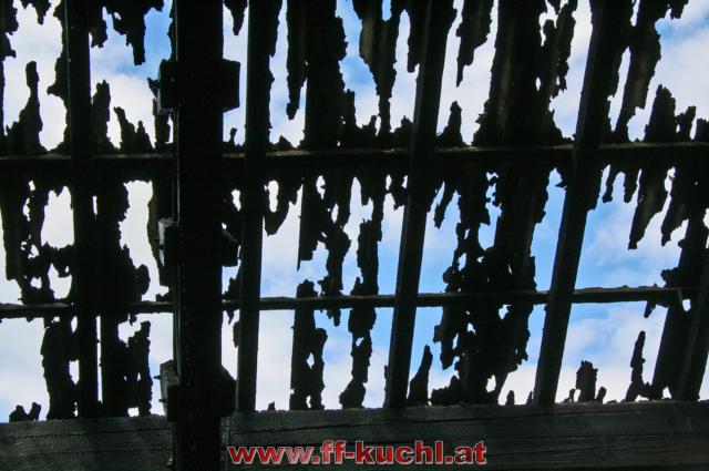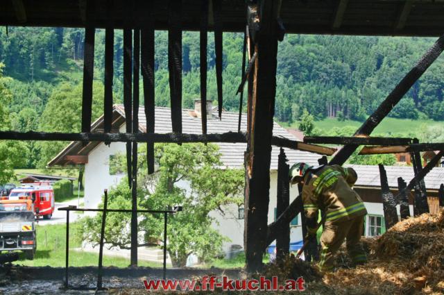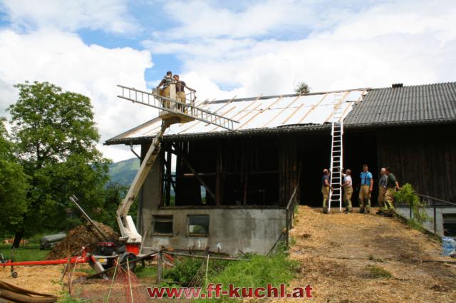 Die in Bereitschaft stehende FF Golling und später auch die FF Bad Vigaun können nach einiger Zeit wieder in die Feuerwehrhäuser einrücken. Die Mannschaft der Feuerwehr Kuchl und vom Löschzug Jadorf sind bis zum Nachmittag mit Aus- und Aufräumarbeiten beschäftigt. Zum Abschluss wird das beschädigte Dach mit Planen abgedeckt.