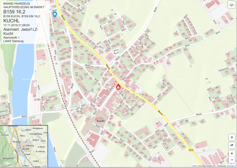 Am 17. November 2019 um 21:08 Uhr wurden Hauptwache Kuchl und Löschzug Jadorf zu einem PKW Brand auf der B 159 - Nähe Marktkreuzung - alarmiert