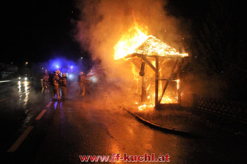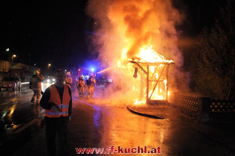 Nach kurzer Ausrückezeit konnte Einsatzleiter HBI Struber Johann bei der Anfahrt erkennen, dass es sich um den Vollbrand eines Bushäuschen handelte. Mit zwei HD-Rohren und unter schwerem Atemschutz konnte der Brand rasch unter Kontrolle gebracht werden. Während des Einsatzes war die B 159 auf Grund der starken Rauchentwicklung für den Verkehr teilweise gesperrt.