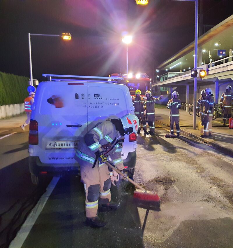 Noch während dieser Arbeiten erfolgte eine zweite Alarmierung: Auf der B159 wurde eine Ölspur gemeldet. Der Tank Kuchl, Last Kuchl und Bus Kuchl rückten daraufhin sofort aus; nach dem Abschluss des ersten Einsatzes folgte auch der Rüstlösch Kuchl zur Unterstützung. Die betroffene Strecke wurde abgesichert und die Fahrbahn mit Ölbindemittel gereinigt. Nach ca. eineinhalb Stunden waren beide Einsätze beendet und die Kräfte konnten wieder einrücken.