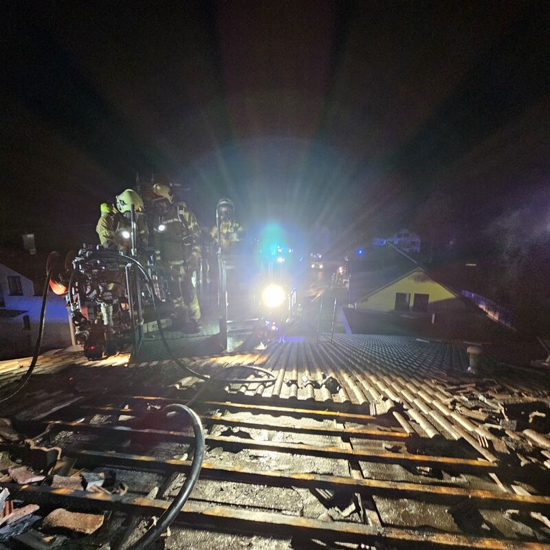 Es folgten bis 04.30 Uhr Nachlöscharbeiten im Dachbereich, um eventuelle Glutnester abzulöschen.