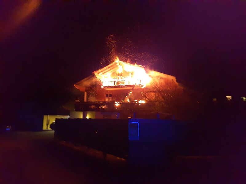 Die Einsatzkräfte fanden beim Eintreffen einen ausgedehnten Brand am Dachstuhl eines Wohnhauses vor.