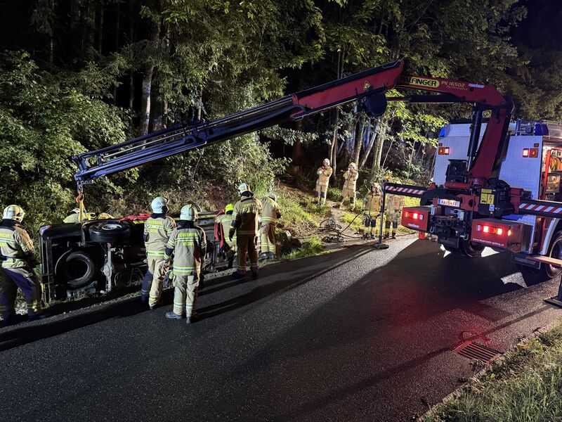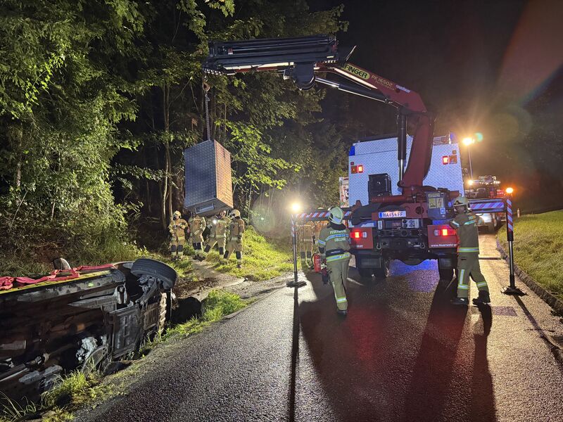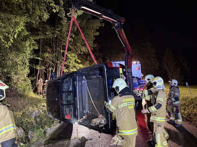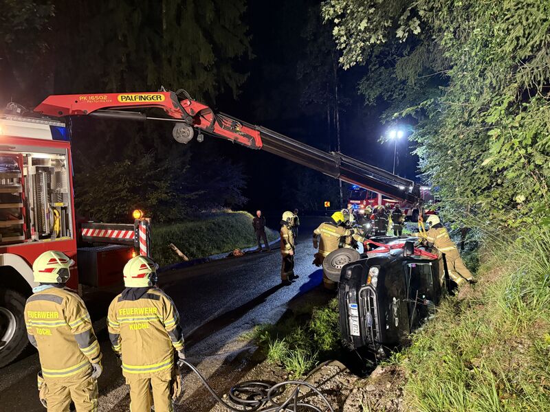 Am 09.09.2025 um 21:38 Uhr wurde die Feuerwehr Kuchl (Markt und LZ Jadorf) zu einer Fahrzeugbergung auf der L 210 an der Gemeindegrenze zu St. Koloman alarmiert.