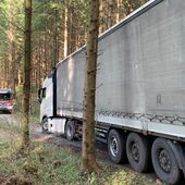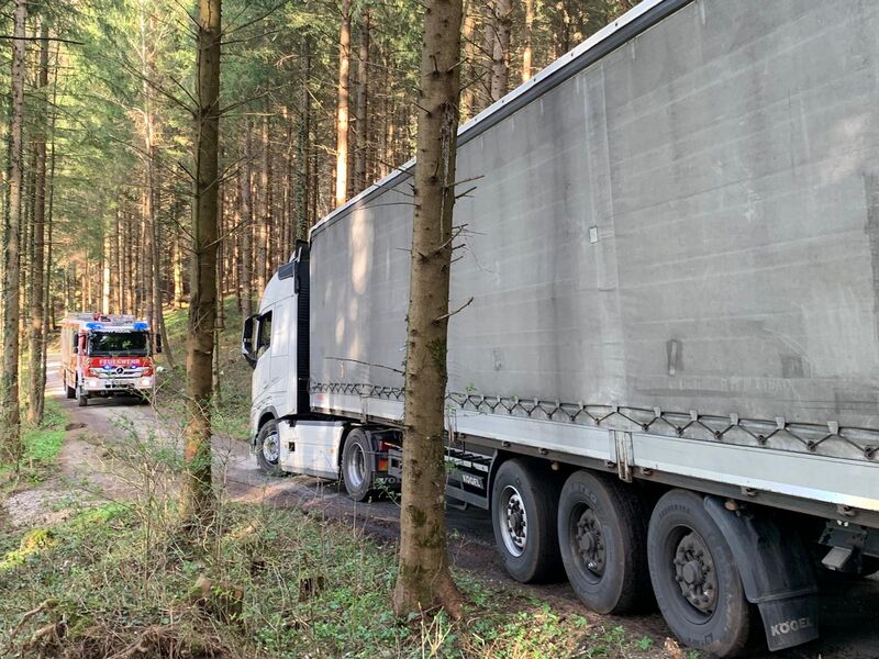 Eine Sattelzugfahrzeug mit Sattelaufleger war durch ein Navigationsgeräte auf eine schmale Seitenstraße geleitet worden.