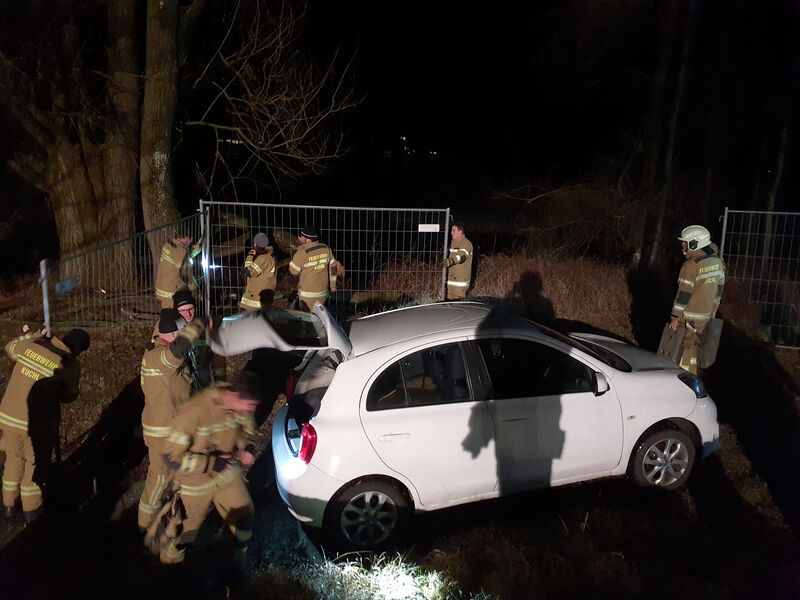 Die Suche nach einem Abschleppdienst oder Technikers, der die Ursache des Gastaustrittes feststellen kann bzw. das Fahrzeug abschleppen kann, stellte sich äußerst schwierig dar und war leider erfolglos. Aus diesem Grunde wurde mit dem Bezirksfeuerwehrkommandanten, dem Bereitschaftsdienst der BH Hallein und des Landeschemikers die weitere Vorgehensweise besprochen und das Fahrzeug zur Bootsrampe an die Salzach transportiert und mittels Bauzaun eine Sicherheitszone errichtet. So konnte eventuelles Restgas in nicht gefährdete Bereiche austreten und eine gefährliche Gasansammlung am Boden verhindert werden.