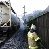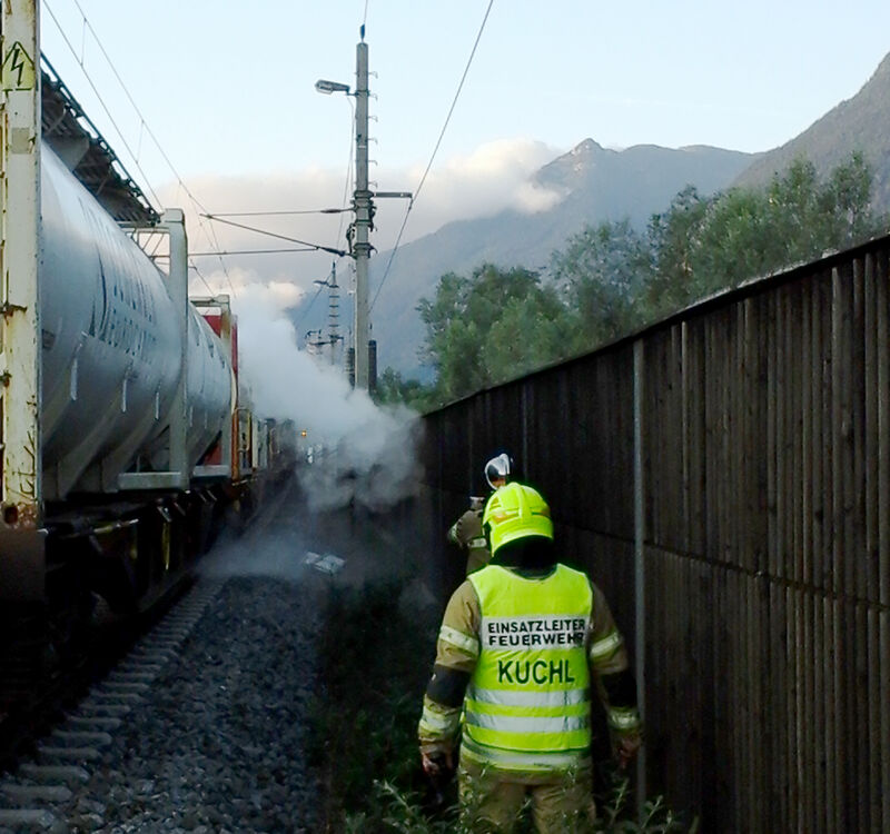 Der Zugführer hielt seinen Güterzug nach einem technischen Defekt in Kuchl an, dabei entdeckte er an einem seiner Wagons einen Stoffaustritt.