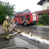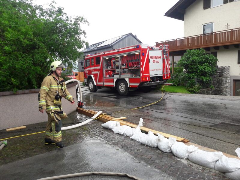 Um 16.32 Uhr wurde die FF Kuchl (Markt und LZ Jadorf) zu einem weiteren Hochwassereinsatz alarmiert. Wasser drohte in ein Wohnhaus einzudringen.