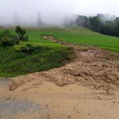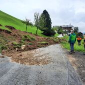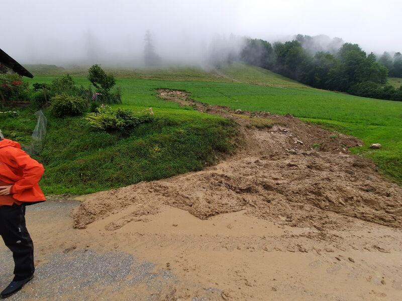 Es mussten auch 3 Wohnhäuser evakuiert werden, da eine Mure abgerutscht war und der gesamte Hang instabil wurde.