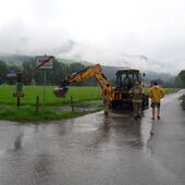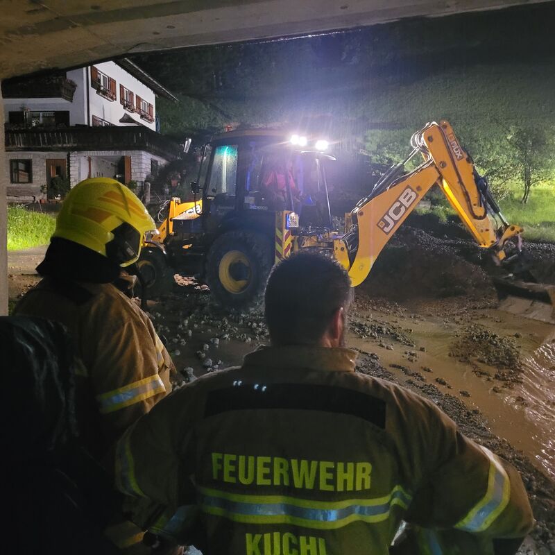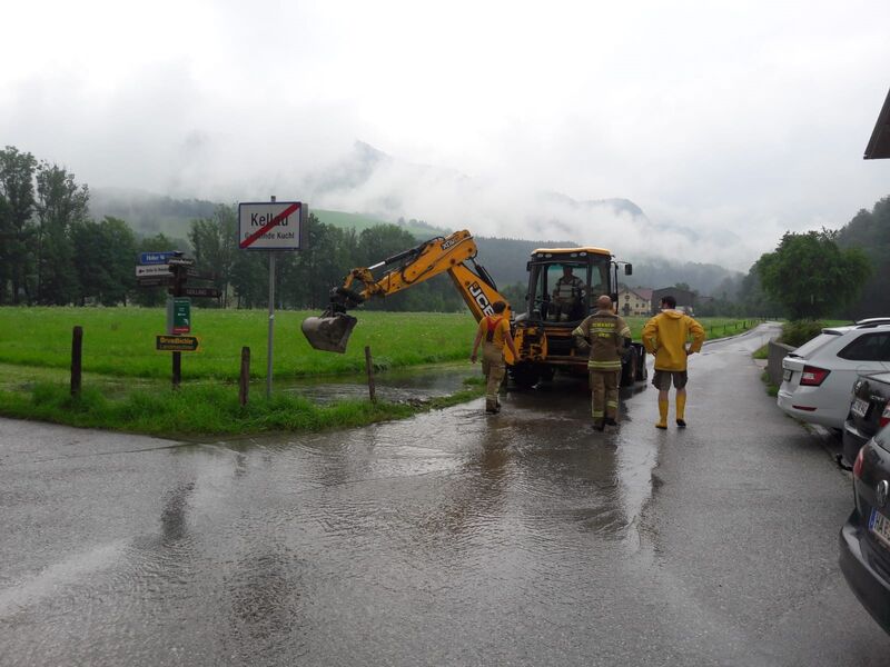 Um 16.31 Uhr wurde die FF Kuchl (Markt & LZ Jadorf) zu einem Hochwassereinsatz alarmiert. Ein Verkehrsweg im Ortsteil Kellau war überflutet.