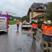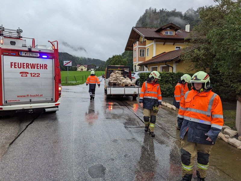 Mit Sandsäcken wurden im Bereich Kellau zusätzlich Objekte abgesichert. Es wurden von der Feuerwehr Kuchl auch Kontrollfahrten durchgeführt, um die kritischen Stellen zu beobachten.