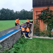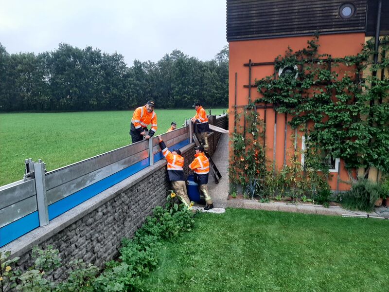 Am 28. August 2023 um 17.00 Uhr wurde die FF Kuchl (Markt und LZ Jadorf) zum Aufbau des mobilen Hochwasserschutzes alarmiert.