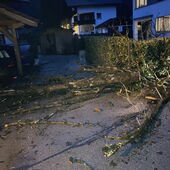Alarmierung der FF Kuchl (Markt und LZ Jadorf), Unwetter Sturm - Bäume auf Gebäude, Garnei