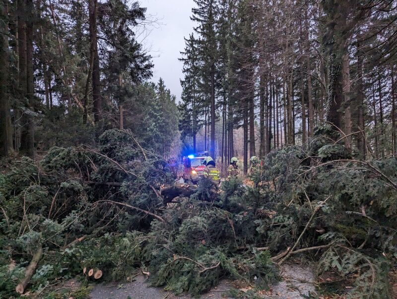Alarmierung der FF Kuchl (Markt und LZ Jadorf), Unwetter / Sturm - mehrere Bäume auf der Straße L210.