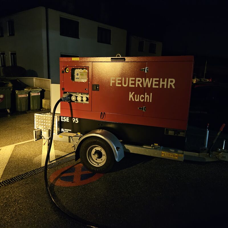 Alarmierung der FF Kuchl (Markt und LZ Jadorf), Stromausfall in Teilen Kuchl. Das Feuerwehrhaus Kuchl wurde mit Notstrom versorgt.
