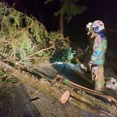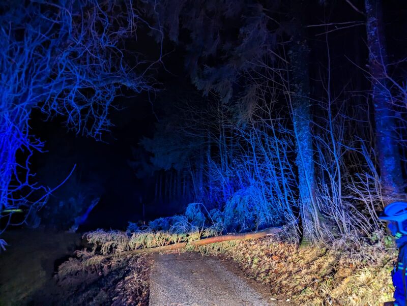Alarmierung der FF Kuchl (Markt und LZ Jadorf), Unwetter / Sturm - Baum über Straße im Ortsteil Kellau.