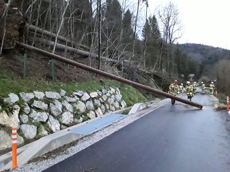 Alarmierung der FF Kuchl (Markt und LZ Jadorf), Unwetter Sturm - Bäume über Straße, L210