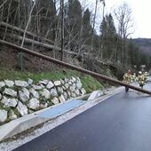 Alarmierung der FF Kuchl (Markt und LZ Jadorf), Unwetter Sturm - Bäume über Straße, Georgenberg