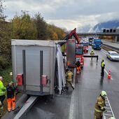 Auf der A10 Fahrtrichtung Salzburg, kurz nach der Auffahrt Kuchl war ein LKW Anhänger in Brand geraten. Der LKW Lenker führte gemeinsam mit den Mitarbeitern der ASFINAG die ersten Löschversuche durch.