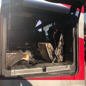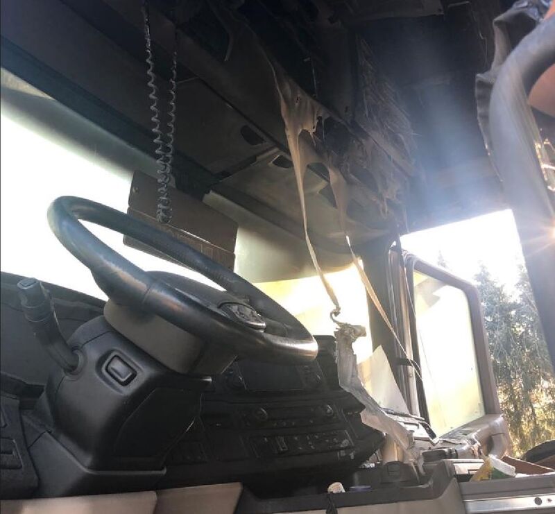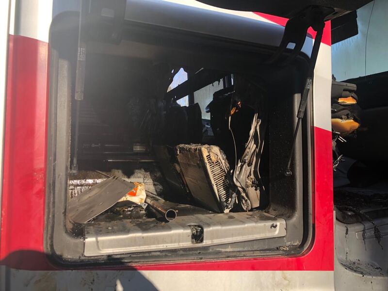 Nach der näheren Erkundung und Öffnung der Fahrertür war eine sehr starke Verrauchung in der Fahrerkabine ersichtlich.