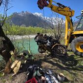 Vom Ufer aus war das Motorrad nicht mehr zu sehen, woraufhin die Tauchergruppe der Freiwilligen Feuerwehr Hallein zur Unterstützung gerufen wurde. Die Bergung gestaltete sich zunächst schwierig – die Suche glich dem sprichwörtlichen "Suchen der Nadel im Heuhaufen". Doch nach einiger Zeit gelang es den Einsatzkräften schließlich, das historische Motorrad in der Salzach zu finden.