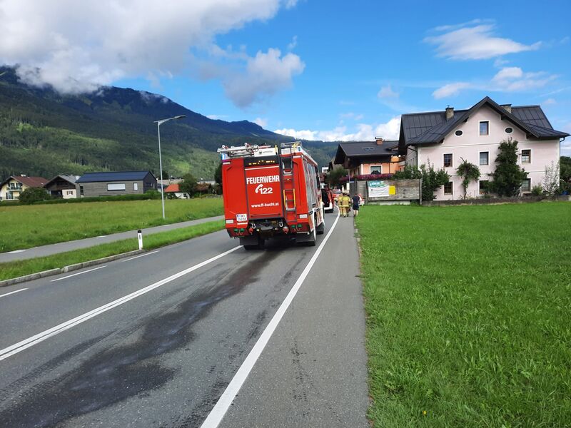 Die FF Kuchl war mit 5 Fahrzeuge im Einsatz und hat die Ölspur gebunden. Der Einsatz wurde danach an die Polizei übergeben.