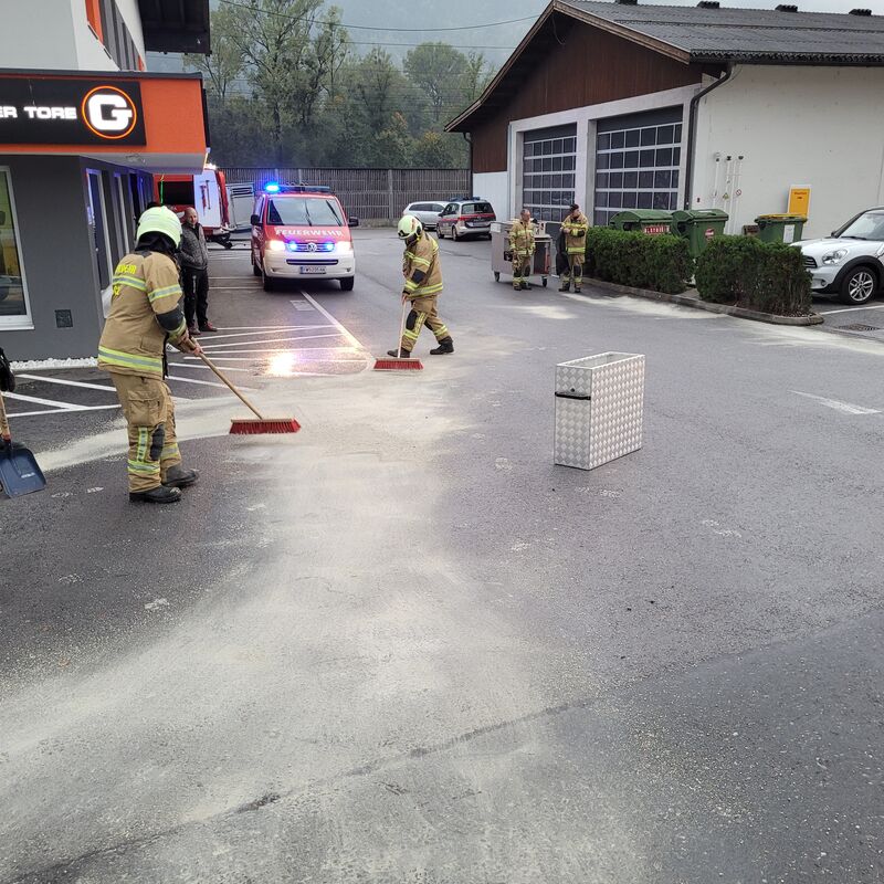 In der Nähe einer Tankstelle hatte ein Fahrzeug Treibstoff verloren und die Fahrbahn verunreinigt. Die FF Kuchl hat die Betriebsmittel gebunden und die Einsatzstelle der Polizei übergeben.