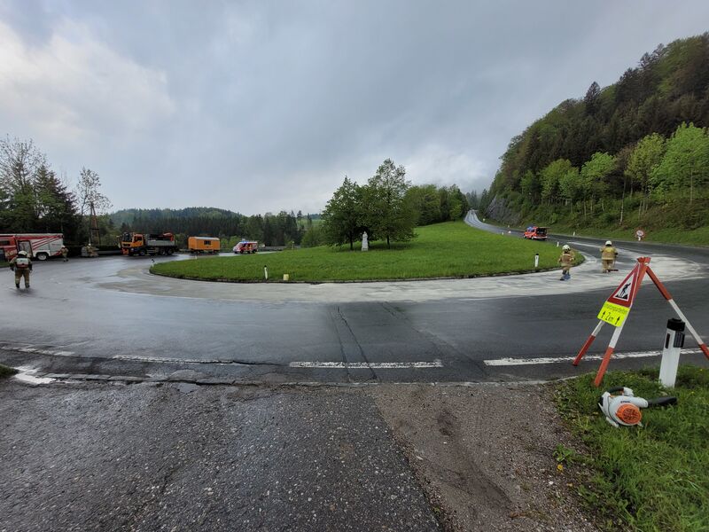 Die Einsatzkräfte der Feuerwehr Kuchl haben den Treibstoff gebunden und die Fahrbahn gereinigt.