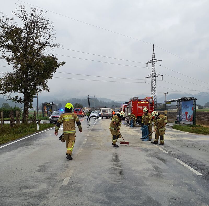 Am 3. Oktober 2024 um 16:02 Uhr wurde die Feuerwehr Kuchl (Markt und LZ Jadorf) mit dem Alarmstichwort „Öleinsatz B159“ alarmiert. Auf der Bundesstraße kam es infolge eines Verkehrsunfalls zu einem Austritt von Betriebsmitteln. Um die Sicherheit der Verkehrsteilnehmer zu gewährleisten, sperrten die Einsatzkräfte die Verkehrswege ab und säuberten die Fahrbahn. Es wurden keine Personen verletzt. Nach ca. 1 Stunde konnten die Einsatzkräfte wieder in das Feuerwehrhaus einrücken.