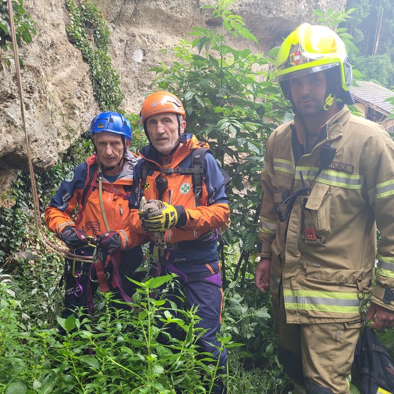 Aufgrund der Lage des Einsatzortes in der Felswand wurde die Bergrettung Hallein (Einsatzleiter Christian SCHARTNER) alarmiert.