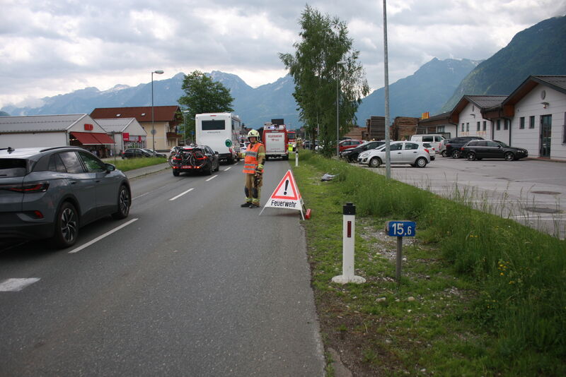 Die FF Kuchl führte die Verkehrsregelung durch, reinigte die Fahrbahn und stelle den Brandschutz sicher.
