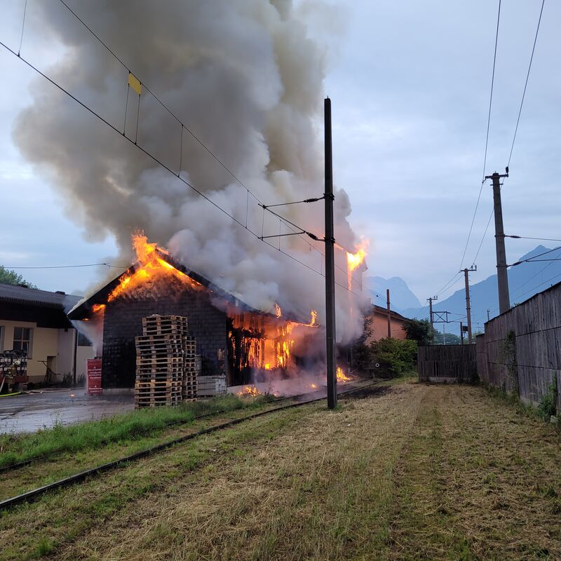 Am 4. Juli 2021 um 5.38 Uhr wurde die FF Kuchl zu einem "Brandverdacht" eines Silos bei einer Lagerhalle in der Nähe vom Bahnhof Kuchl alarmiert.