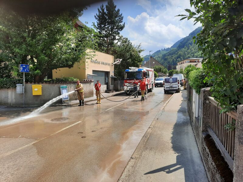 Die FF Kuchl (Markt und LZ Jadorf) unterstützte am 19.07.2021 und 20.07.2021 mit je einem Fahrzeug die Feuerwehr Hallein bei den Aufräum- und Auspumparbeiten nach dem Hochwasser.