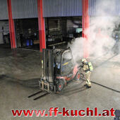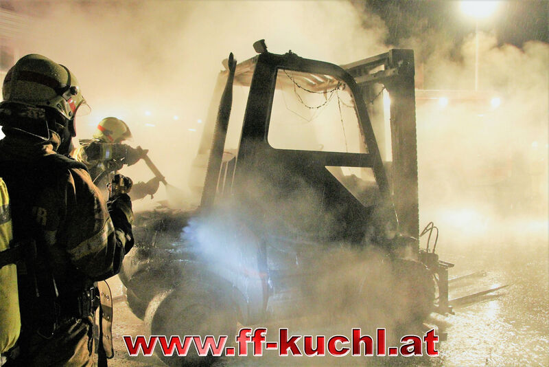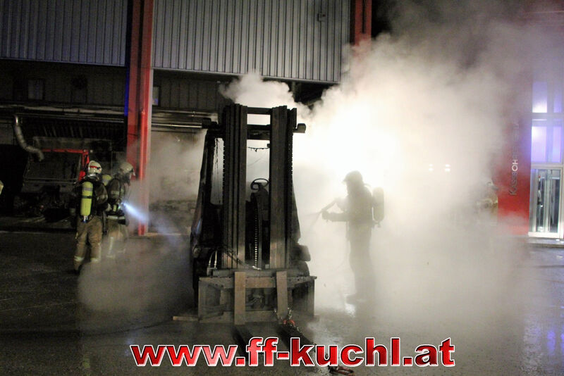 In der Nacht von Faschingsdienstag auf Aschermittwoch kam es in einem Gewerbebetrieb im Kuchler Ortsteil Garnei unbemerkt zu einem Brand. In der Produktionshalle war aus noch ungeklärter Ursache ein Dieselstapler in Flammen aufgegangen. Durch die starke Hitzeeinwirkung und die thermische Belastung der Hallentore wurde ein Alarm zur Wachgesellschaft weitergeleitet. Die zuständige Wachbeamtin bemerkte bei ihrem Eintreffen, dass ein Betreten der Halle durch die intensive Rauchausbreitung nicht mehr möglich war und alarmierte über Notruf die Feuerwehr. Dies und das rasche Eingreifen der Freiwilligen Feuerwehr Kuchl verhinderten einen Großbrand.