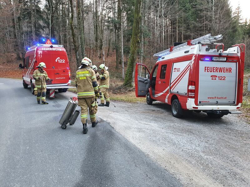 Eingesetzte Kräfte: FF Kuchl (Hauptwache und Löschzug Jadorf), Polizei, Fachwerkstätte LKW