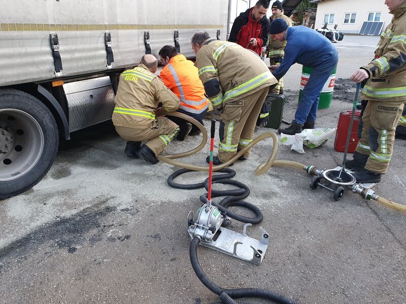 Die Betriebsmittel des bereits abgestellte LKW wurden zum einem mit Ölbindemittel gebunden.