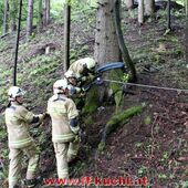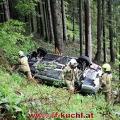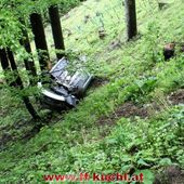 Einsatzleiter ABI Rupert Unterwurzacher bot sich folgende Lage: Ein PKW hatte sich auf der steilen Straße - Gott sei Dank ohne Fahrer - selbstständig gemacht und war rund 60 Meter in einen Wald abgestürzt. Keine weiteren Personen in Gefahr, keine ausfließenden Flüssigkeiten. Nach dem Absichern der Einsatzstelle und dem Stabilisieren des verunfallten Fahrzeuges, wurde der Brandschutz aufgebaut. Der PKW wurde mittels TLF-Seilwinde unter Ausnützung der gesamten Seillänge geborgen und anschließend mit dem Rüstlöschfahrzeug auf die befestigte Straße gezogen und dem Besitzer übergeben.