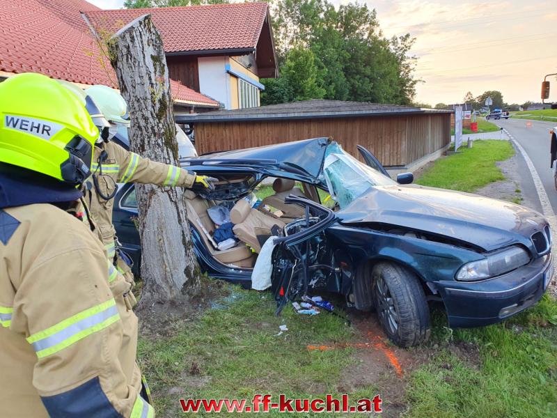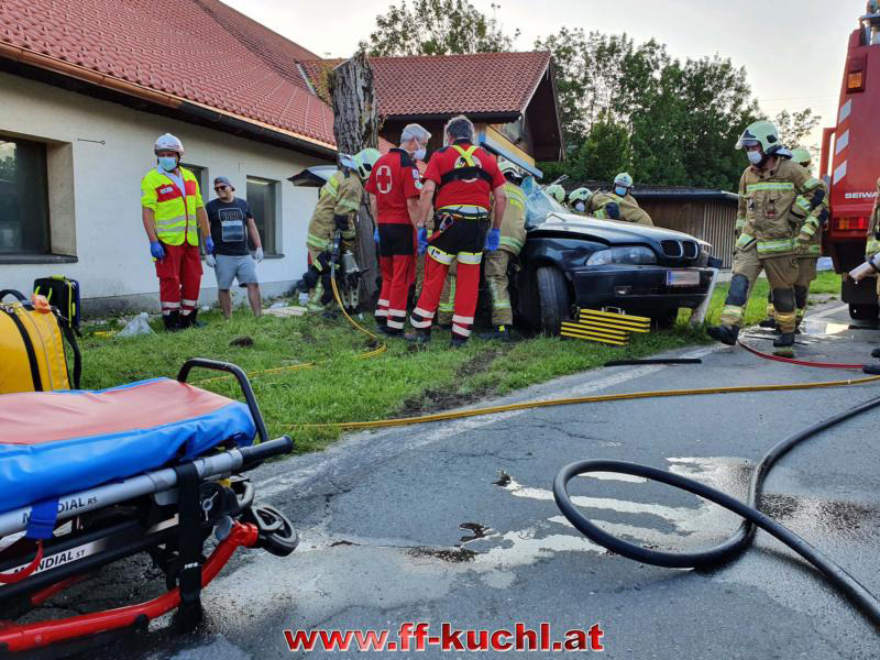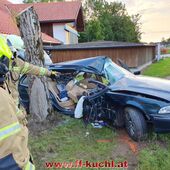 Nach der Erstversorgung durch den Notarzt konnten die Einsatzkräfte der FF Kuchl die Patientin aus dem Fahrzeug mit dem hydraulischen Rettungssatz retten und dem Roten Kreuz übergeben. Mittels Notfallhubschrauber erfolgte der Abtransport in das Krankenhaus. Am Fahrzeug entstand Totalschaden.