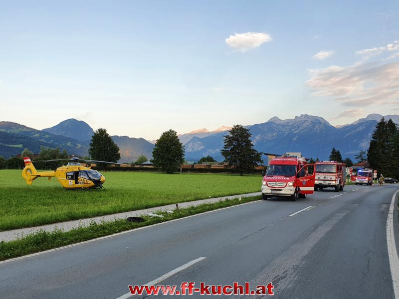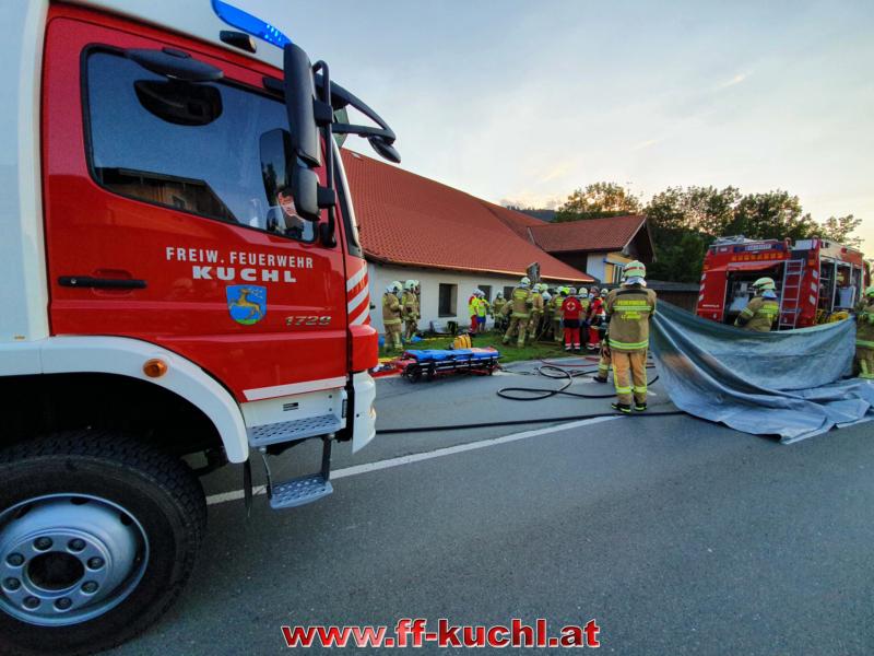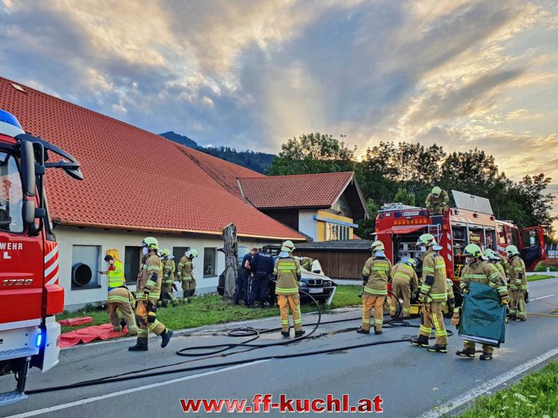 Eingesetzte Kräfte: FF Kuchl, LZ Jadorf, Polizei, Rotes Kreuz, Nofallhubschrauber, Abschleppunternehmen